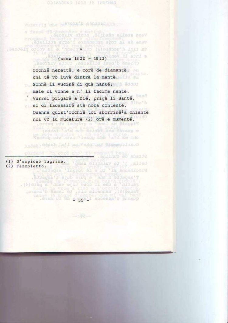 Testi popolari di Capitanata. Canzoni, poesie e proverbi raccolti da Michele Marchianò, con appendice lessicale di Pasquale Piemontese. Foggia, Atlantica, 1984. 248 p.