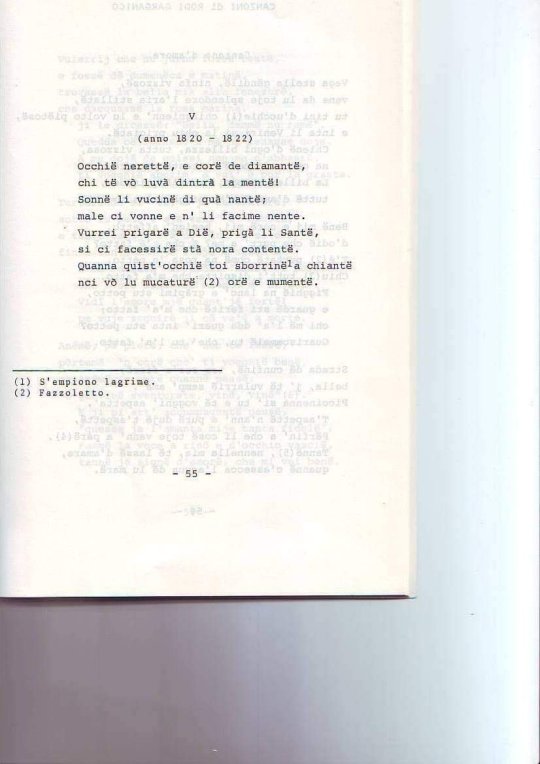 Sono questi due sonetti che vengono pubblicati dalla Columbia nel 1957, in Southern Italy and the Islands e successivamente ripubblicati in una edizione italiana dalla Pull nel secondo volume del Folklore musicale italiano nel 1973.