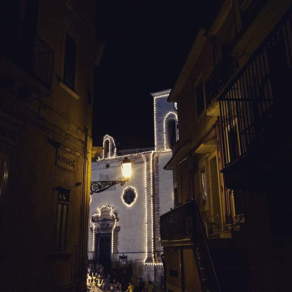 I cartelli con la scritta vendesi o affittasi sono scritti a penna e rimandano a numeri di cellulari personali. Sì vendono le case di famiglia, quelle ereditate da figli o nipoti che in estate non ci vogliono più venire; oppure si affittano stanze o piccole case arredate per chi invece la vacanza la immagina lenta e tranquilla. Carpino, un po’ distesa, po’ ‘arroccata; un po’ sgualcita, con facciate intere di palazzi in cui il sole ha mangiato il colore e anche l’intonaco. E poi altre, facciate su cui il sole batte forte e fa risplendere la pietra di Apricena che le riveste. Una terra di contrasti, di spaccature. Che si manifestano in maniera netta. La bellezza devastante di una immensa magnolia che si erge in centro, su un fazzoletto di terra davanti a un portone, balconi ammiccanti come dehor e sotto, le bombole di gas arrugginite che si arroventano al caldo. Balconi e scalini, che spuntano in mezzo alla strada senza un perché. Al punto che un segnale stradale ne segnala il pericolo. Balcone sporgente, avverte il cartello. Sporgente e appuntito, sta lì.