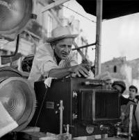 Estate 1958: a Carpino ho avuto il mio primo, vero incontro con il cinema nel suo farsi, ero lì per Jules Dassin che girava “La legge” ed io dovevo scrivere un libro per Cappelli editore, per la collana “Dal soggetto al film” diretta da Renzo Renzi. Dassin era la passione di tutti i miei coetanei per il realismo del suo “La città nuda” ma sopratutto per essere stato espulso come uno sputacchio dal cinema USA allora in fase di autolesionismo maccartista. Approdare a Carpino era una conquista: fino a Rodi Garganico ci si arrivava da Foggia con una ferrovia privata a scartamento ridotto, vagoni tarlati 1910, la locomotiva era a carbone. Poi ci si affidava a un’asmatica corriera, viaggiando insieme a polli, tacchini e mamme assediate da decine di bambini a piedi nudi. C’era un libro da scrivere, e va bene, ci tenevo perché a Renzi l’avevo proposto io, fotografare non era previsto dal contratto, figuriamoci chi poteva riuscire a trattenermi, lo facevo per me stessa, anche perché la Titanus che produceva il film mi inondava di fotografie di scena, ma io scattavo a testa mia, Dassin come eroe del cinema creativo, chiuso in una concentrazione solitaria, aperto alla comunicazione totale con Otello Martelli il direttore della fotografia, con Arturo Zavattini il suo assistente, con la masnada dei suoi attori Marcello Mastroianni, Melina Mercouri, Yves Montand, Paolo Stoppa, Pierre Brasseur, Gina Lollobrigida, e soprattutto con le comparse neorealisticamente arruolate sul campo e ipnotizzate come per sortilegio. Il momento grande che sempre ci si aspetta ma capita così di rado è stato al termine di una settimana di esterno notte, quando da Carpino tutti ci siamo precipitati a San Menaio dove era il nostro albergo, gli stanchi morti a letto, gli stanchi vivi Dassin e pochi altri di corsa siamo andati in riva al mare e poi dentro l’Adriatico che con buona pace di D’Annunzio non era “verde come i pascoli dei monti” ma per il sole radente dell’aurora di un azzurrino dolce e chiaro chiaro. Per fotografare, mi sono fermata con l’acqua fino a mezza gamba“.
